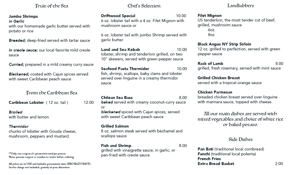 Enjoy the flexibility of a half-board dining experience at Bucuti & Tara with the island’s top-rated restaurants. Choose from a list of 7 restaurants and enjoy a three-course dinner that includes an appetizer, main course, dessert, and coffee or tea. Depending on the venue, you’ll order from either a set menu or the à la carte menu.