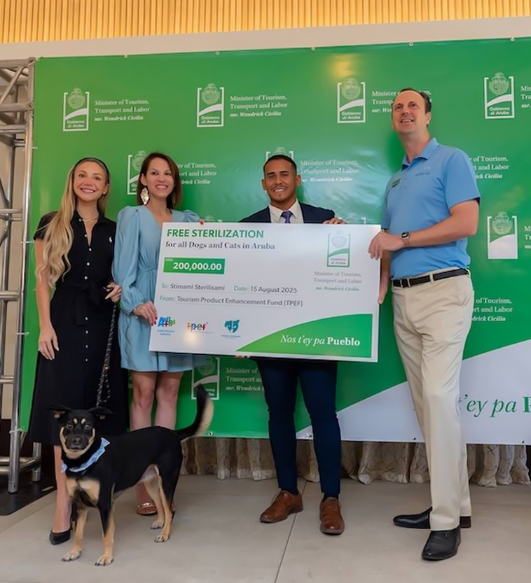 Founded by Bucuti & Tara Beach Resort in 2016, following a proposal by Yesenia Arends, the Stimami Sterilisami Foundation leads Aruba’s island-wide effort to humanely reduce stray animal populations. Established as a foundation in 2018, Stimami Sterilisami provides free and accessible spay and neuter services to create a kinder, safer, and healthier island for all.